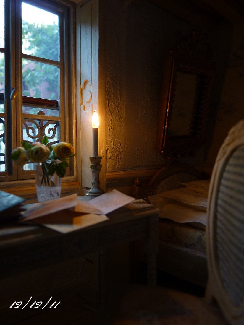 Il me restait à finir le soubassement, côté fenêtre, poser les poutres dans l'alcove, faire le cadre ovale et remplir l'armoire. |