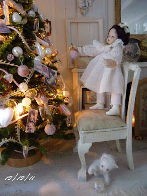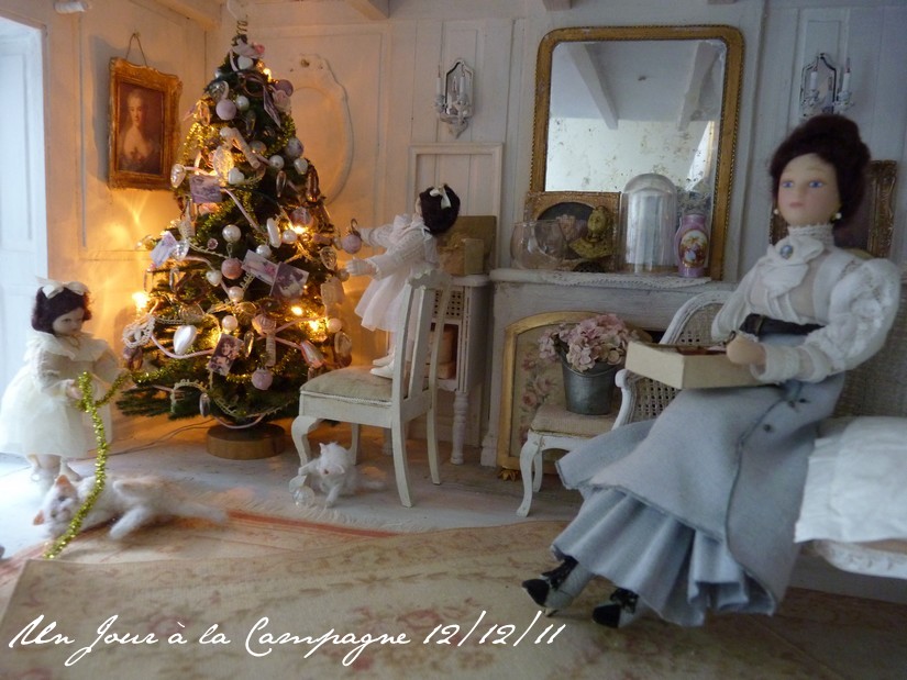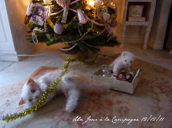 Ce sont les petites jumelles qui ont décidé de faire le sapin, cette année et, bien sûr, elles ont choisi le grand salon de la Villa des Roses où elles ont pu le décorer exactement à leurs goûts (sous les yeux bienveillants de Marguerite). Et comme on peut le voir, les chats en ont profité pour mettre la patte à la pâte... |