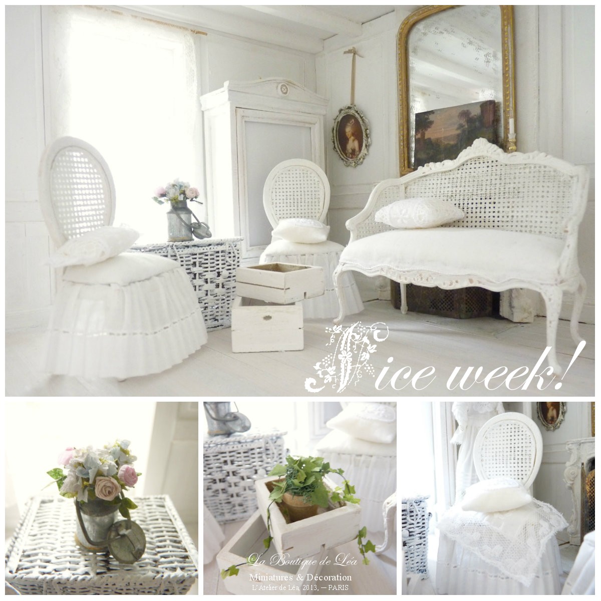 Fall is gradually approaching, the days get darker earlier, the sun will probably decide to snub us for a good time (after all, we had our dose this summer), then nothing like that inside all white. It gives a few pictures of my new creations in miniature (largely inspired by my "real home" without the couch, unfortunately, because I would like to have the same: D). I made (the creations and photos) pending between the layers of coatings/plaster (since it must wait for it to dry and do it again ... with smoothing) and paintings that currently monopolize me into a room (size 1/1). Since the beginning of September, I do some tidying and renovation (just one piece this year, I had never took time for this one) and I want to develop myself a "corner" where I can "store". (We know that everything is relative, because at least to push the walls ... I will not be able to perform miracles, either ... However it is imperative that I make regularly a clear place to work (also to see exactly what I have or what I need in equipment, supplies, ideas waiting to be materialized, etc.).. So I'll spend a few days tweaking everything. In the meantime, I wish you a wonderful week, bright and creative.