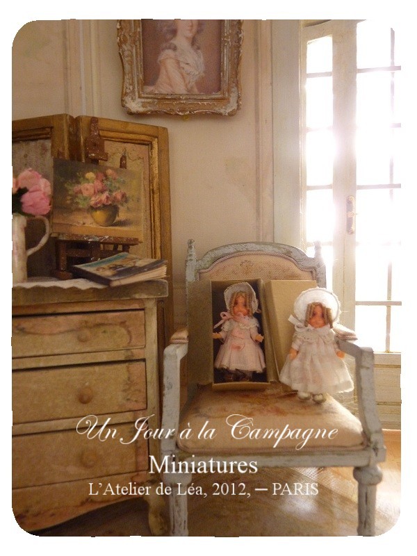 Cette fois, les poupées sont encore plus petites…comme le montre la photo de droite, ci-dessous, 3 cm, en tout et pour tout… Elles sont inspirées et créées dans le style* de la première Bleuette qui ressemblait beaucoup à une Jumeau. (*Il faudrait cependant que mes petites reproductions ne dépassent pas 2,3 cm pour être à l'échelle exacte. Bleuette mesurait lors de sa première édition, en 1905, 27 cm, puis 29 cm, un peu plus tard).